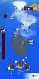 2、局内中途,岛屿战斗中收集资源,拾取随机刷新的炮弹并发射攻击敌人,当船只破损时,操纵水手自动修复,避开龙卷风、漩涡等危险。