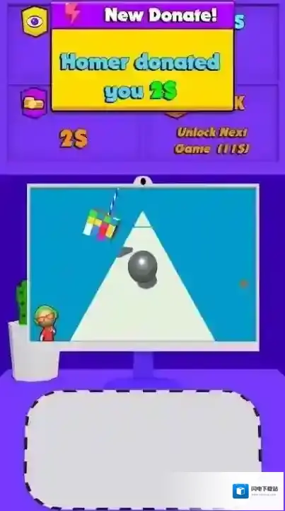 3、第三关,成功让小球通过箭头指向的平台,吸引观众(VIEWER变为24),完成关卡,解锁新任务。