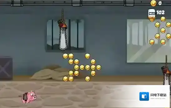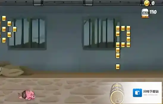 3、搞笑死亡动画:小猪撞击障碍时会分离为“猪身”与“背包”,并伴随“嗷呜”惨叫音效,死亡次数越多,解锁的“猪生惨状”成就越奇葩。