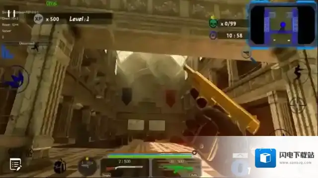 3、左手移动,右手开火,点击下方道具栏切换武器,右上角显示敌人位置。