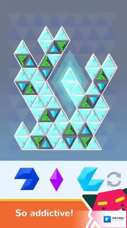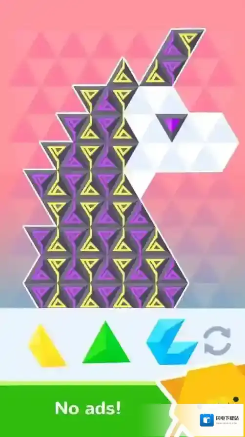 3、随难升提组技:谜题难度从容易逐步提升至极限,随着难度增加,需要拼接的图案更复杂,对菱形与色彩的组合技巧要求更高,不断锻炼操控者的空间思维与组合能力。