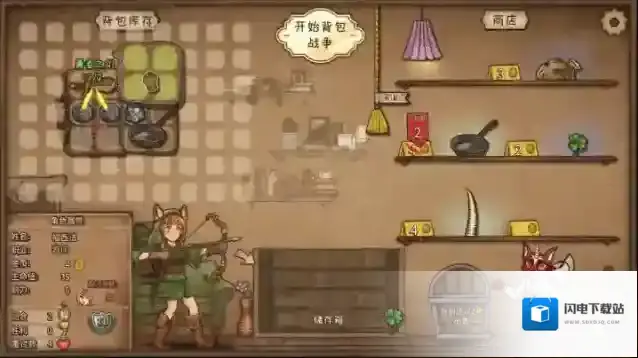 2、开始战斗前,我们可以在商店中消费,购买各种物品,可以将它们暂时存放在储物箱中。