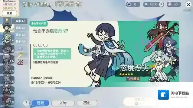 Silly Wisher,是B站UPsketchi自制的一个抽卡小游戏,玩家可以抽取到原神里的角色,游戏包含了从开服到现在所有版本的角色和武器卡池,而且所有资源全部免费,不用花费一分钱,玩家可以想抽那个角色就抽哪个角色,游戏的概率也很还原,还在等什么,快来下载看看你能多少抽出金。