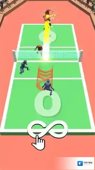 2、操作方式玩家操控红蓝阵营角色,依据箭头、∞符号指引,点击、滑动屏幕完成接球、击球,与对手竞技。