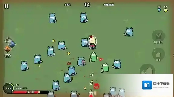 5、全部选好后就会正式开始,滑动屏幕可以控制角色移动,点击右边攻击按键可以自动攻击。