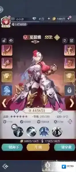 首先就是第一个角色她在这个游戏中主要担任的是魔族的奶妈角色,大家可以在这个阵容中带上他不仅可以给队友以及自己带上一个护盾,还可以把受伤的队友回复状态,做到起死回生的作用,还可以把敌人的攻击力降低一些,让敌人的伤害变低一点的自家队友就会比较轻松一点了。