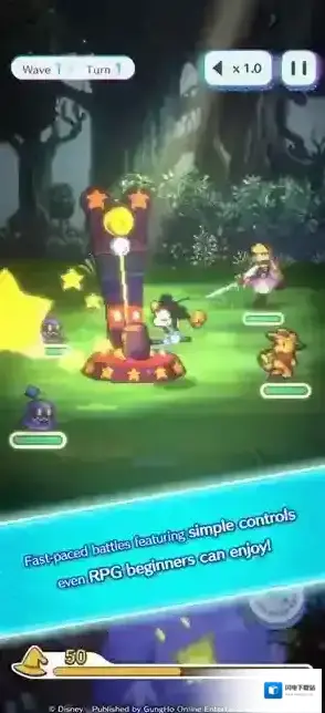 1、简单战斗系统:游戏提供了易于上手的战斗系统,玩家可以通过简单的命令来指挥迪士尼角色战斗,也可以选择自动模式让角色自动战斗。
