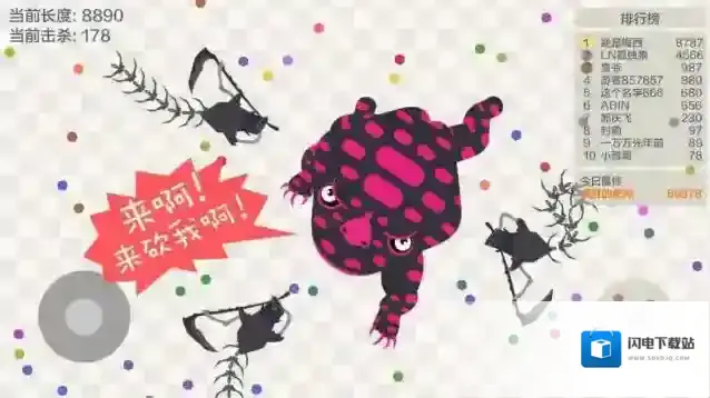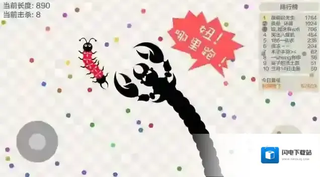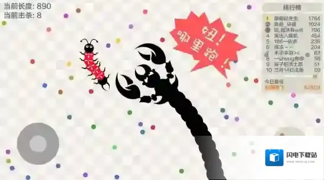 3、吃掉场景中的小球可以让你的身体变长,身体越长获得的分数越多。