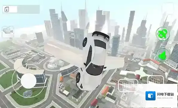 3、调整飞行汽车的角度(箭头指向转向动作),规划空中路线,避开城市建筑,平稳操控,完成飞行挑战,探索更多区域。
