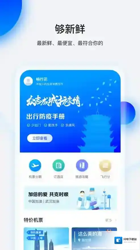 1、畅行花app是一特价机票旅游出行必备的软件;