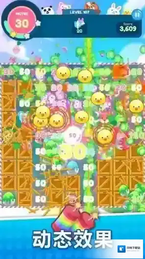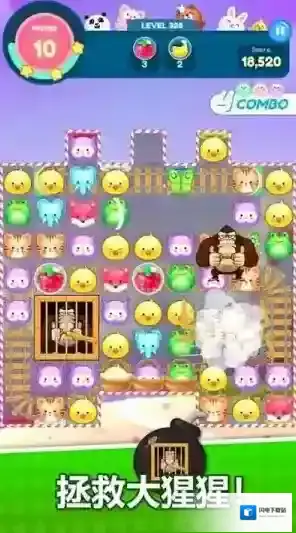 3、连击奖励系统设计巧妙,连续消除会触发可爱的动物角色祝贺动画,为玩家提供正向激励,增强游戏体验。