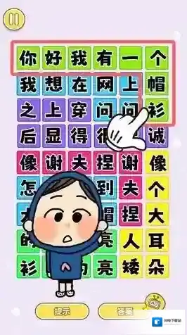 我有一个帽衫带来别具一格的文字解谜体验,通过发现语句间的隐藏关联破解关卡,简洁界面聚焦思维挑战,逐步解锁的谜题考验逻辑推理与联想能力,在趣味互动中锻炼大脑灵活性,既适合休闲娱乐又能提升语文素养,每个成功解开的谜团都带来满满成就感。