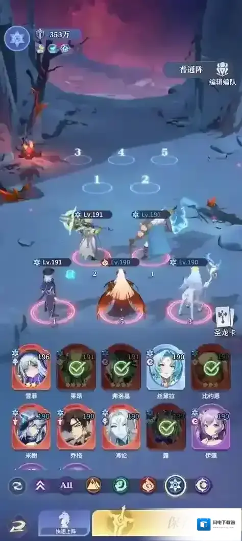 理由:骑士长与森森提供免伤与格挡效果,提升队伍防御,莓、梅丽莎与森森组成羁绊,成为队伍的输出核心。