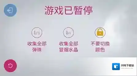 5、在游戏过程中,尽量收集全部冒烟的水晶和弹珠,如需暂停或退出当前游戏,可以点击暂停按钮或左上角的退出按钮。