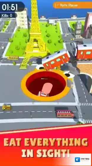 黑洞大作战(Hole.io),由VOODOO推出的一款休闲吞噬类游戏。游戏中玩家将会操控自己的黑洞在城市中移动,吞噬合适的物品来增长自己的经验,以此来不断提升自己的等级,扩大自己的黑洞面积,这样就能吞噬更大的物品了!汽车、大楼这些全部都能吞下!不仅如此,城市之中还会存在其他的黑洞,只要你比它面积更大,你就能将它吞噬掉!