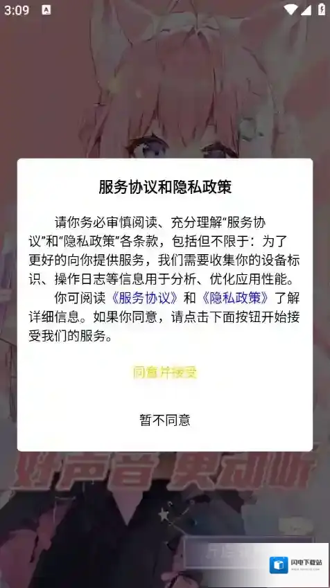 1、用户首先在梦马内容库下载AI优变声器app,查看并同意隐私政策与用户协议。