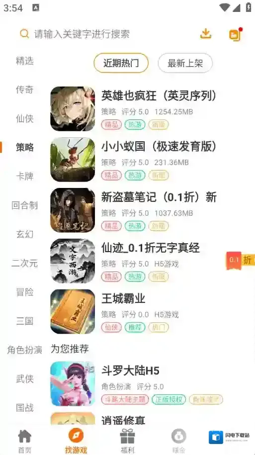 3、集合了多种类型游戏,涵盖休闲益智、动作冒险、传奇、仙侠、卡牌等。