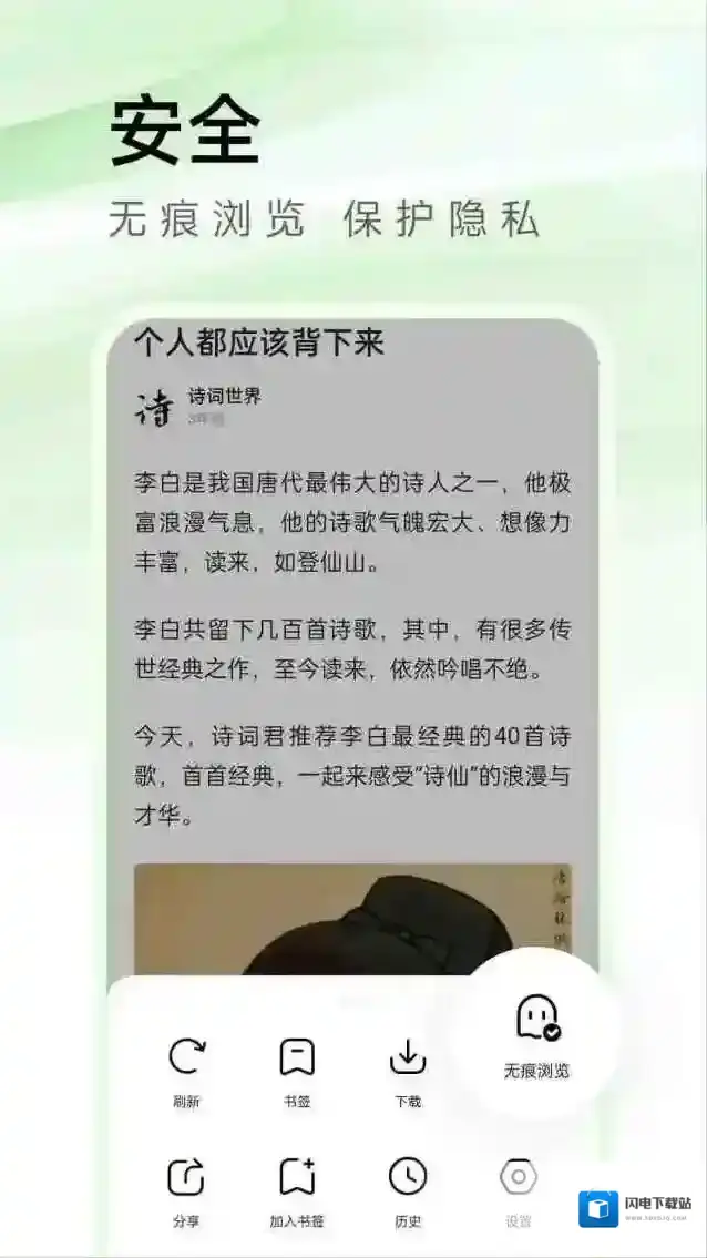 1、提供了无痕浏览模式,开启后将不会保留任何浏览痕迹,确保用户的隐私安全得到充分保护。