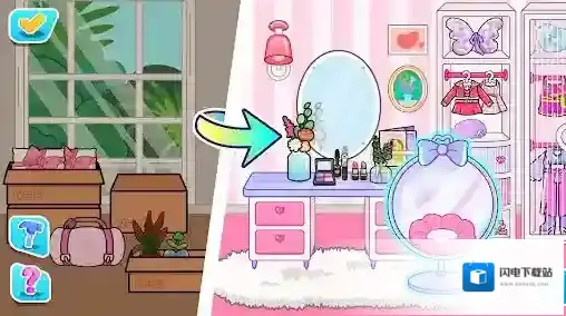 2、aha世界里,你可以随心所欲地设计房间,添加新人物,拖动物品,玩法基本没什么限制。