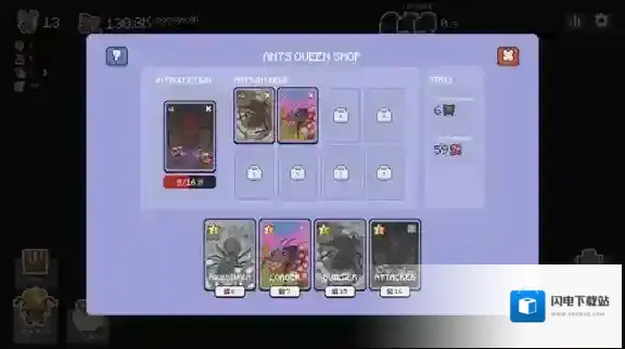 5、点击左下角的buy ants可以消耗资源购买蚂蚁,不同类型的蚂蚁消耗的资源是不一样的。