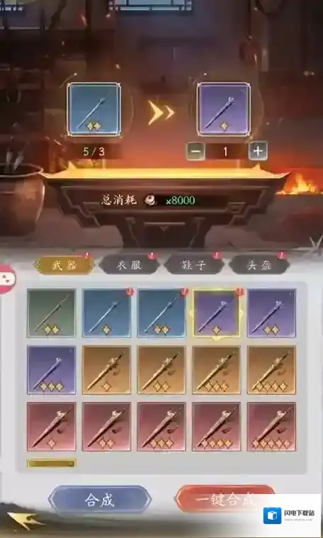 2、铁匠铺合成:高星级装备可通过铁匠铺合成,消耗3件同星级装备和铜币。