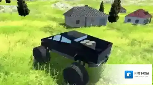 2、控卡车(方向盘、踏板),在草地行驶,避障碍,找“箭头”指引的目标点。