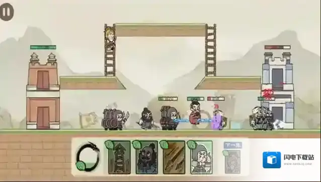 2、在牌库选武将,编排出战阵容,进入关卡,操控角色策略战斗。