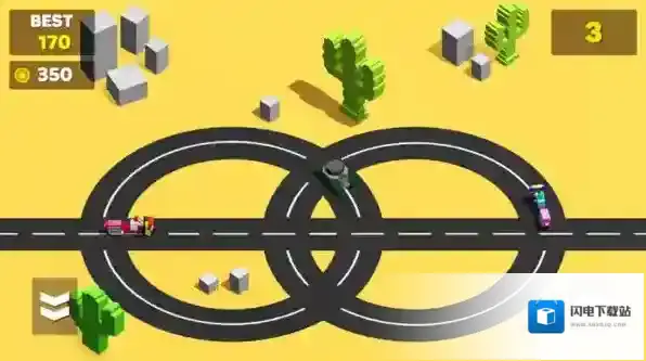 1、像素风赛道设计:采用低多边形像素风格打造城市高架、太空轨道等主题赛道,赛道上分布闪烁的加速带、旋转的障碍柱等元素,以复古像素画面呈现爽快的竞速体验。