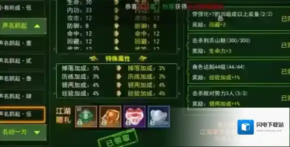 赋予玩法允许玩家为装备添加额外属性,如武功攻击力、命中率、闪避率等,使装备性能更加全面和强大。