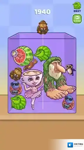 3、右上角NEXT可以看到下一个娃娃,方便你进行合成。