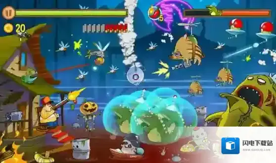 沼泽激战(Swamp Attack),充满了美式夸张风格的一款2D横版射击塔防游戏。游戏中的主人公生活在一片森林中,在他的小木屋周围有一片沼泽,沼泽中有着许多动物,随时都准备来围攻小木屋,玩家需要扮演主人公,拿起手中的枪械来保护小木屋,守住自己的领地!游戏诙谐幽默的风格正是吸引人的特色之一,例如主角虽然深陷包围,却也是从容的坐在小板凳上悠闲打靶,而且手持各种武器还会出现不同的呆萌表情,非常的有趣。游戏内有着丰富的关卡可以去挑战,并随着挑战还能用金币去升级武器提升战力,迎接更多的挑战!