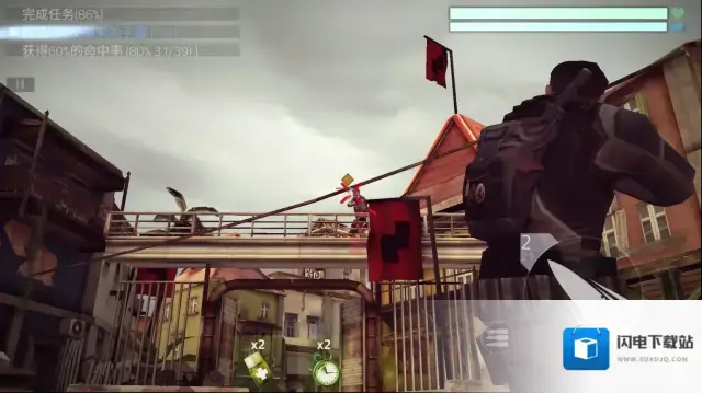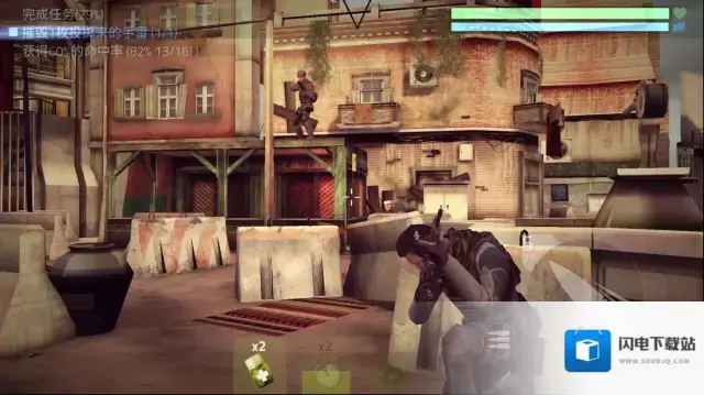 3、进入关卡后左边是移动视角,右边是射击按钮,关卡的目标会在左上角显示。