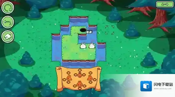 4.所有兔子进入洞穴即通关,可移动步数显示在洞穴旁。